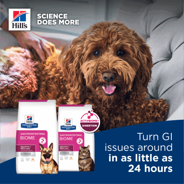Speak to your vet about Hill’s Prescription Diet GI Biome and discover how the right nutrition can make all the difference.